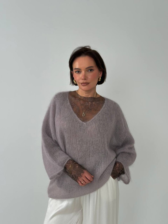 Легкий джемпер «павутинка» з V-подібним вирізом із ніжного мохеру. Поєднує тепло, повітряність і витончену елегантність — ідеальний для щоденних та вечірніх образів.