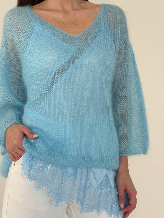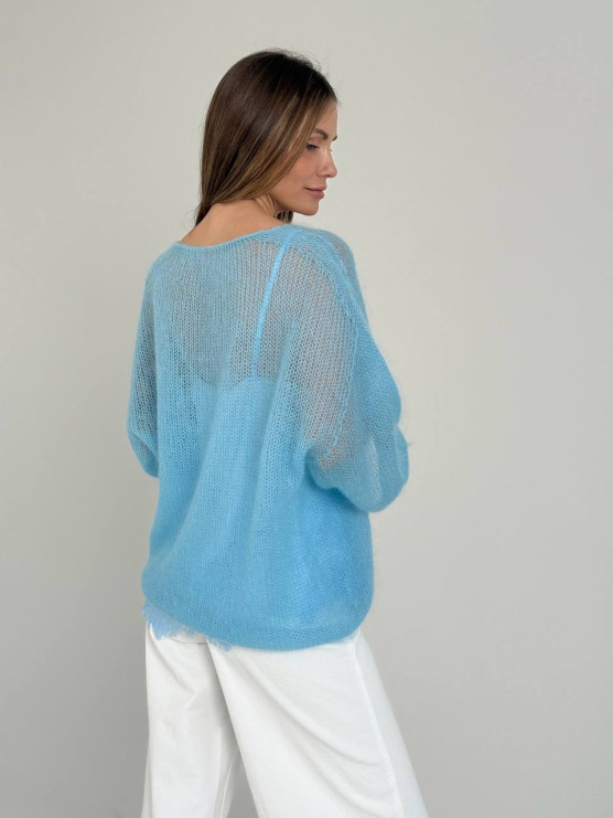 Легкий джемпер «павутинка» з V-подібним вирізом із ніжного мохеру. Поєднує тепло, повітряність і витончену елегантність — ідеальний для щоденних та вечірніх образів.