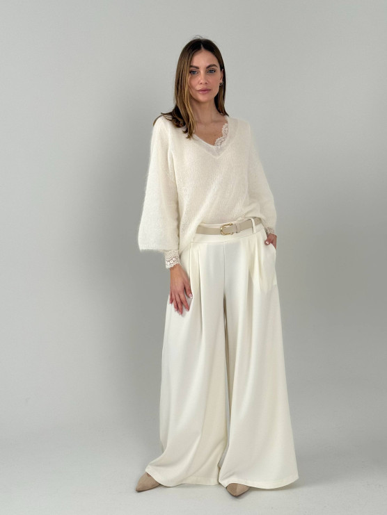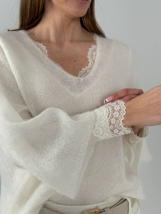 Легкий і ніжний джемпер із мохеру, що дарує тепло та комфорт. V-подібний виріз підкреслює шию, а вільний крій забезпечує свободу рухів.